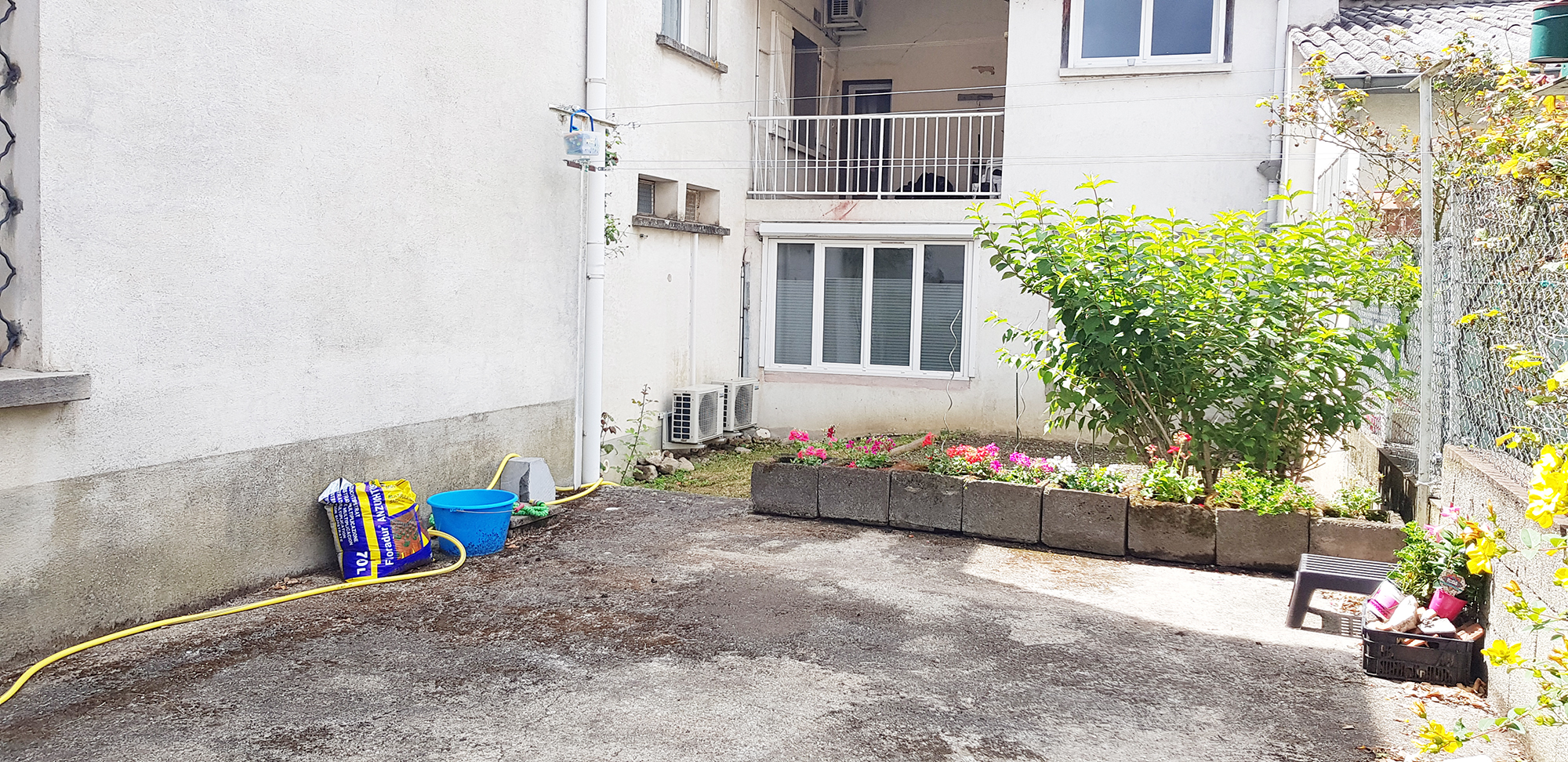 Appartement T2 avec garage, appartement T5 avec terrasse, garage indépendant, local commercial, place de stationnement sécurisée et indépendante.