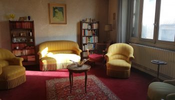 Quartier Crabié, maison de ville de plain pied comprenant, séjour, cuisine, 3 chambres, entrée, sde, wc, cellier. Beaux volumes, cheminée, parquets. Grande terrasse calme et agréable de 40 m2. Pas de garage, travaux à prévoir.