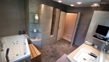 Elle se compose d’un beau salon, d’une cuisine équipée, de 5 chambres, ainsi que de deux salles de bains, idéales pour une famille nombreuse.